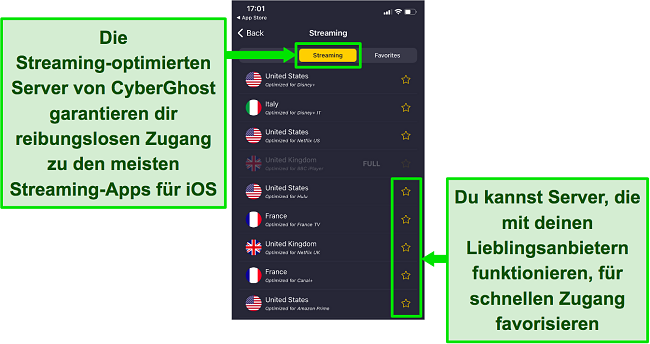 2. CyberGhost – Spezialisierte Streaming-Server für ruckelfreies Streaming auf iOS