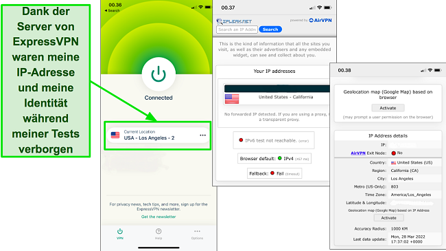 Dank dem Schutz vor DNS-Lecks von ExpressVPN, der in jedem Server integriert ist, bleibt man immer anonym und muss sich keine Gedanken hinsichtlich seiner Privatsphäre machen, während man sein iPhone oder iPad verwendet. Ohne sein eigenes DNS könnte ExpressVPN deine DNS-Anfragen nicht schützen. Während meiner umfassenden Tests von ExpressVPN waren die Internetaktivitäten auf meinem iPhone 8 immer verborgen und geschützt – damit wurde sichergestellt, dass ich mit jedem Browser im Internet unbesorgt surfen konnte.